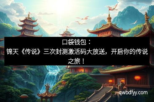 在这个科技飞速发展的时代,游戏已经成为许多人日常生活中不可或缺的一部分。一款好玩的游戏,不仅能带来乐趣,更能点燃你的激情,开启一段惊心动魄的冒险旅程。锦天游戏工作室倾心打造的全新MMORPG巨作《传说》,现已迎来三次封测的激动人心时刻!特别值得一提的是,封测期间,官方将空投大量激活码,让每一位玩家都能第一时间加入到这个极致热血的奇幻世界中。